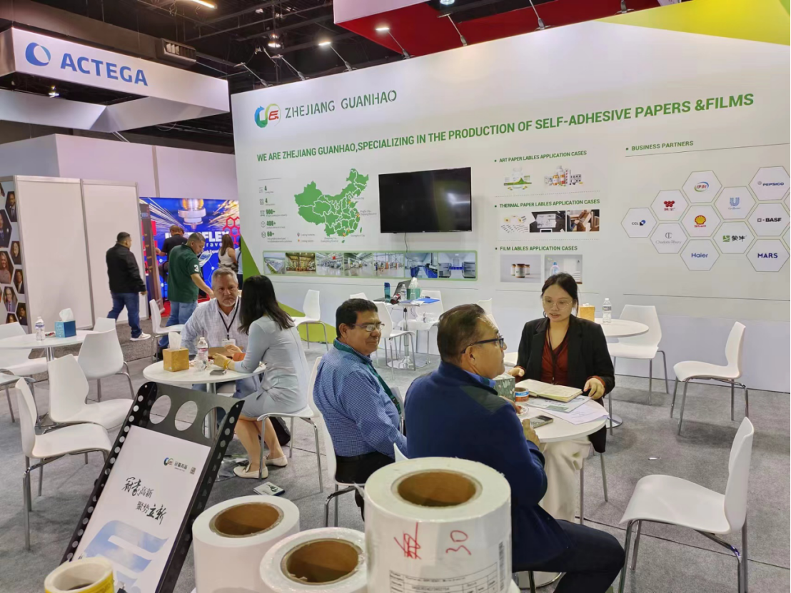 浙江冠豪作為不干膠標簽材料專業(yè)制造商亮相此次展會,全方位展現(xiàn)了在醫(yī)藥、飲料、食品、日化、文教等領(lǐng)域應(yīng)用的38款明星產(chǎn)品,如透明BOPP、鍍鋁BOPP、PE、可移除等產(chǎn)品,雖展會上材料商眾多,但我司環(huán)保型產(chǎn)品因性能優(yōu)異,可以減少在整個價值鏈中產(chǎn)生的廢棄物和碳足跡,直擊客戶心理,展位前人流絡(luò)繹不絕,吸引了來自全球各地客戶駐足了解及交流討論。